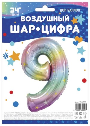 Fa (34"/86 см) Цифра, 9 Радужные искры, 1 шт. в упак.